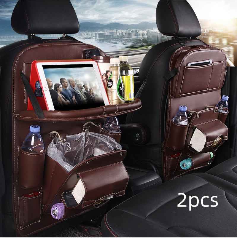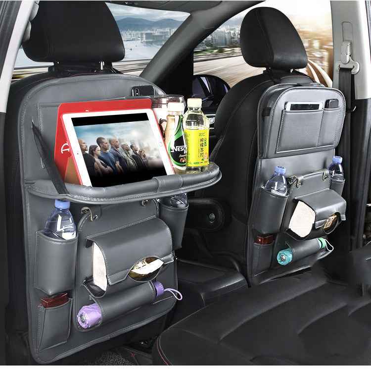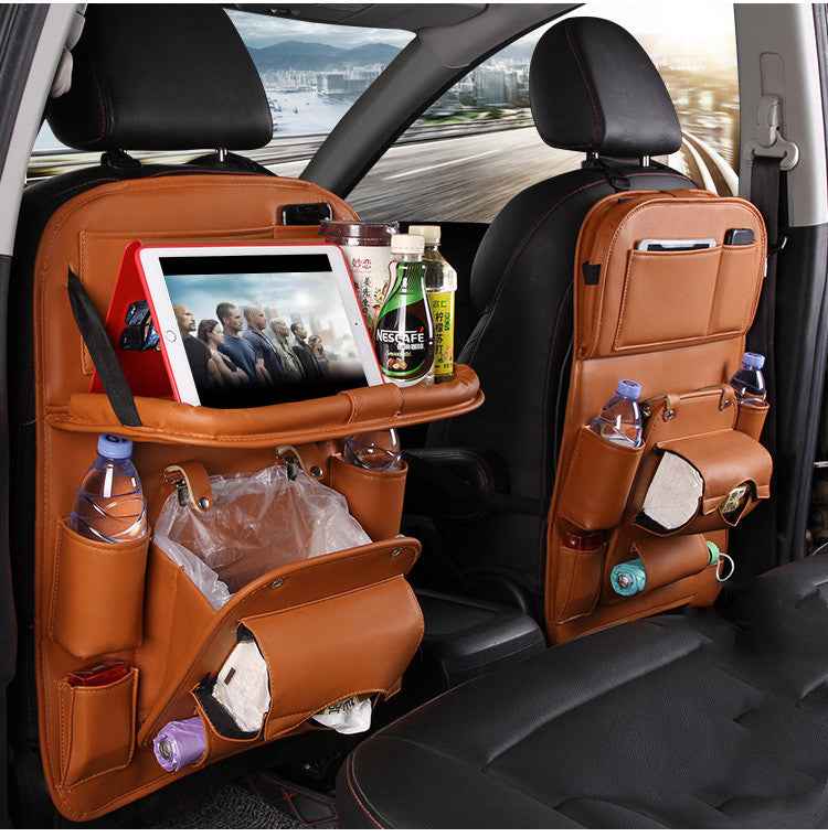 PU Leather Car Storage Bag Multifunction Seat Back Tray Hanging Bag Waterproof Car Organizer Automotive Interior Accessories